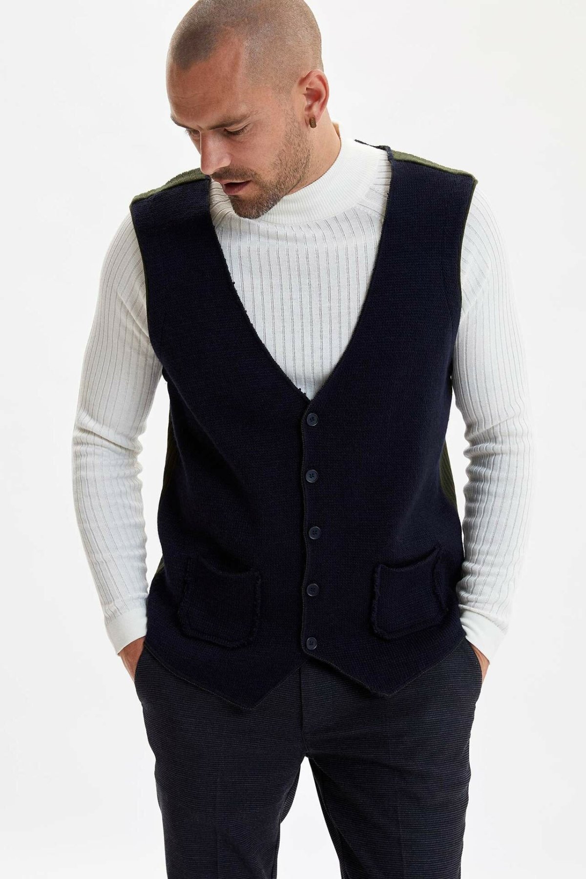 DeFacto Man Spring Knitted Vest Men Casual Pocket Decors Vest Tops Male Black Green Color Vest-I3539AZ18SP