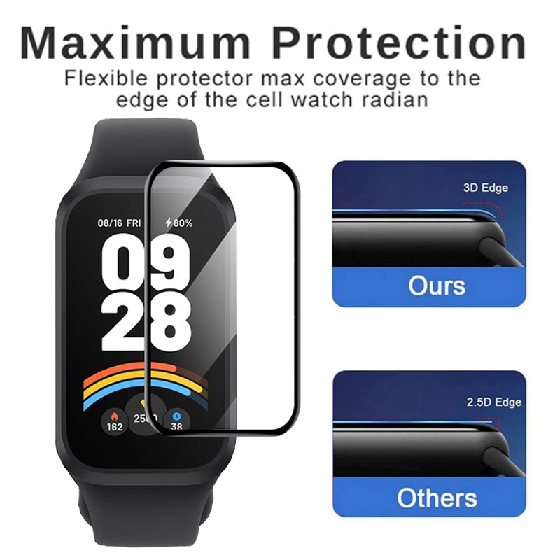 1-3PCS 3D Curved Screen Protector For Xiaomi Redmi Band 3/Mi Band 9 Active Soft HD Tempered Glass Film for Redmi Band 2 No Glass