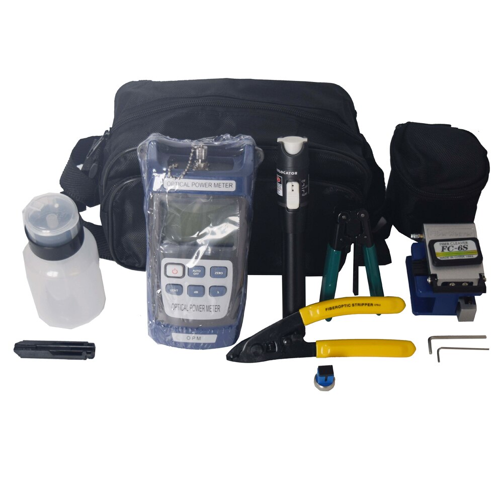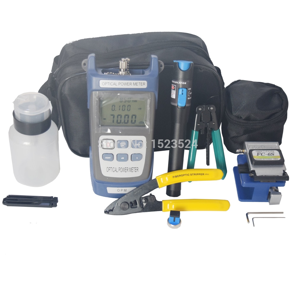 12pcs/set FTTH Fiber Optic Tool Kit with Fiber Cleaver Optical Power Meter Visual Fault Lcator 5km/10km/20km/30km