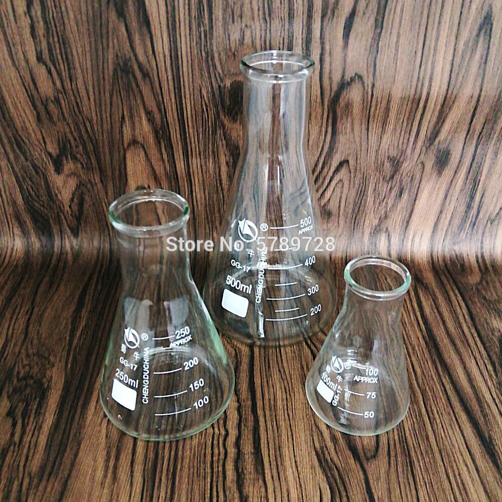 1set 100/250/500ml Triangular Flask with Wide Neck Borosilicate Glass Conical Erlenmeyer Flask For Chemistry Laboratory