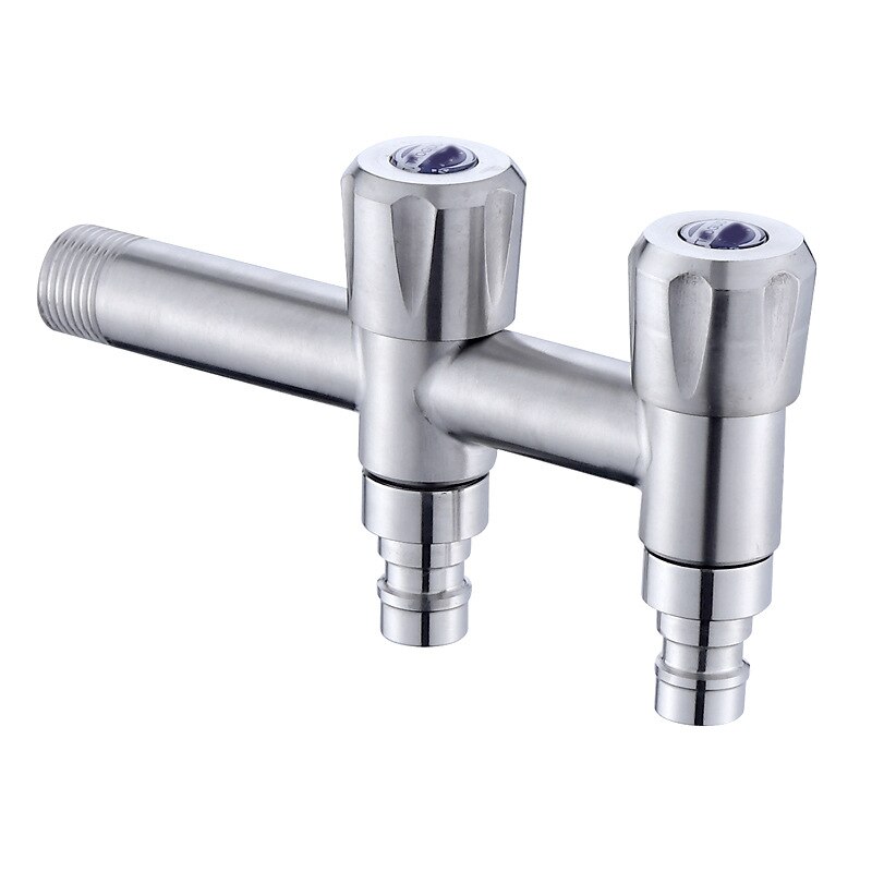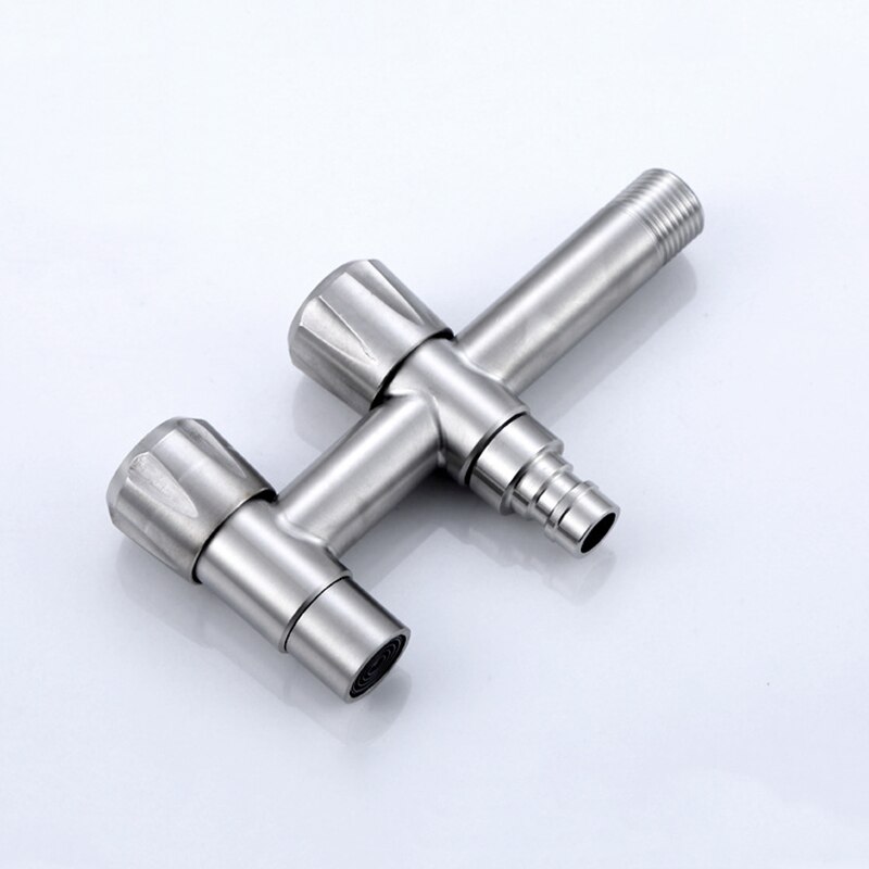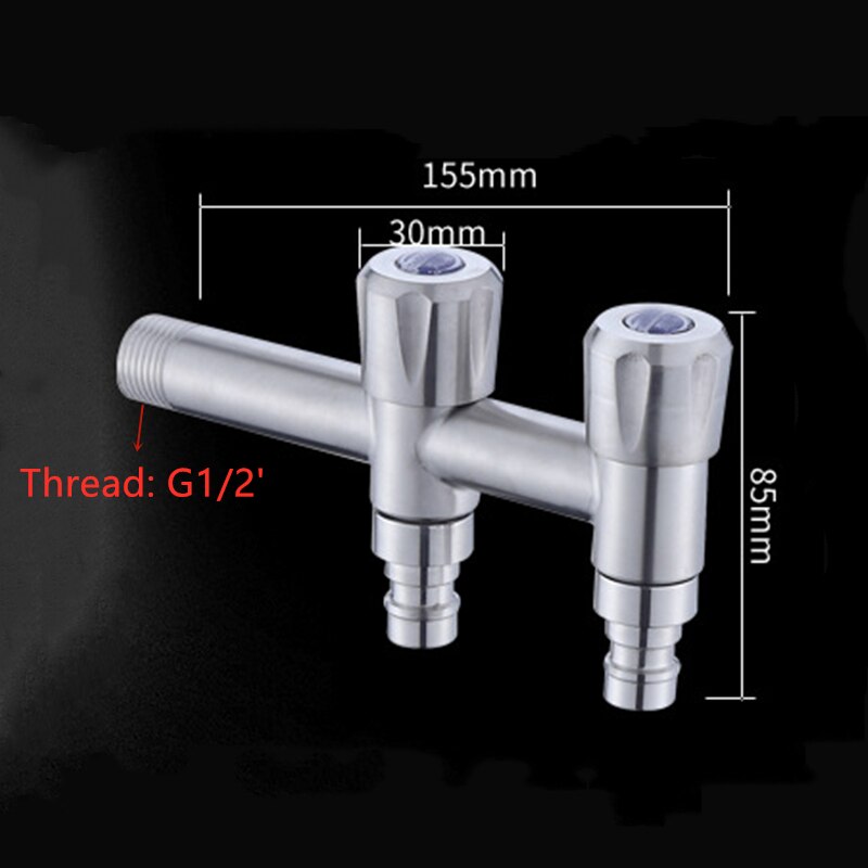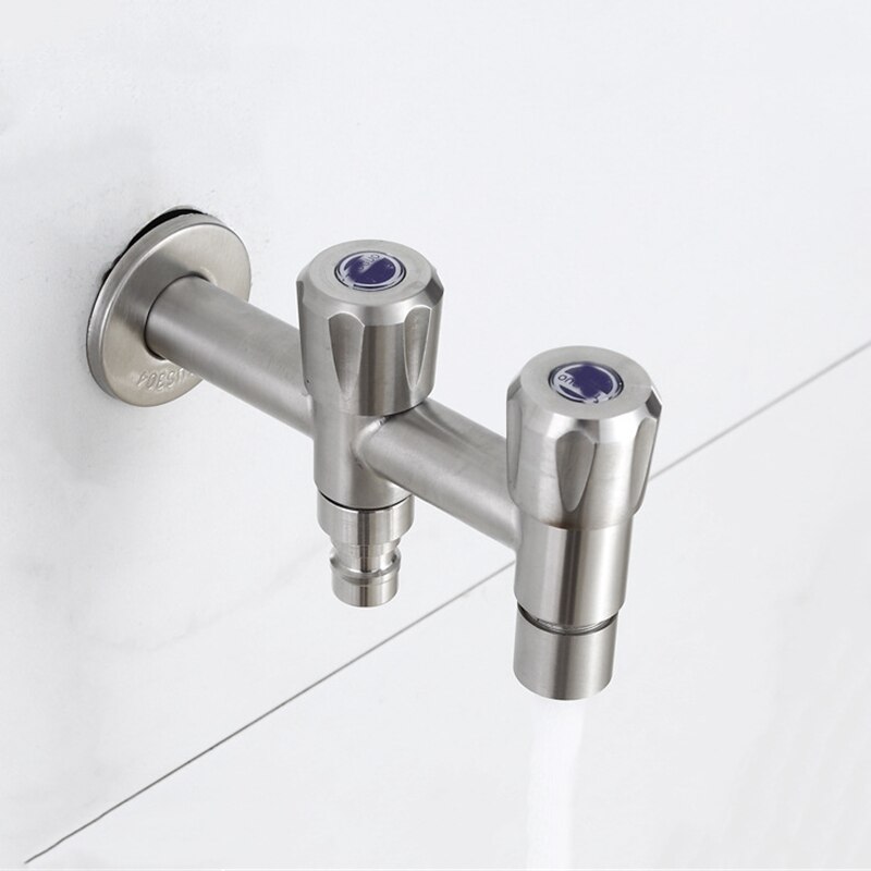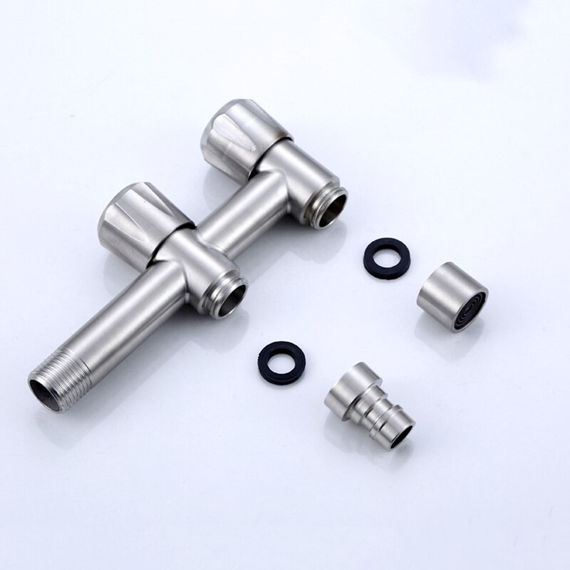 2 Water Outlet Washing Machine Faucet Tap Double Spout Garden Outdoor Water Tap Brushed G1/2