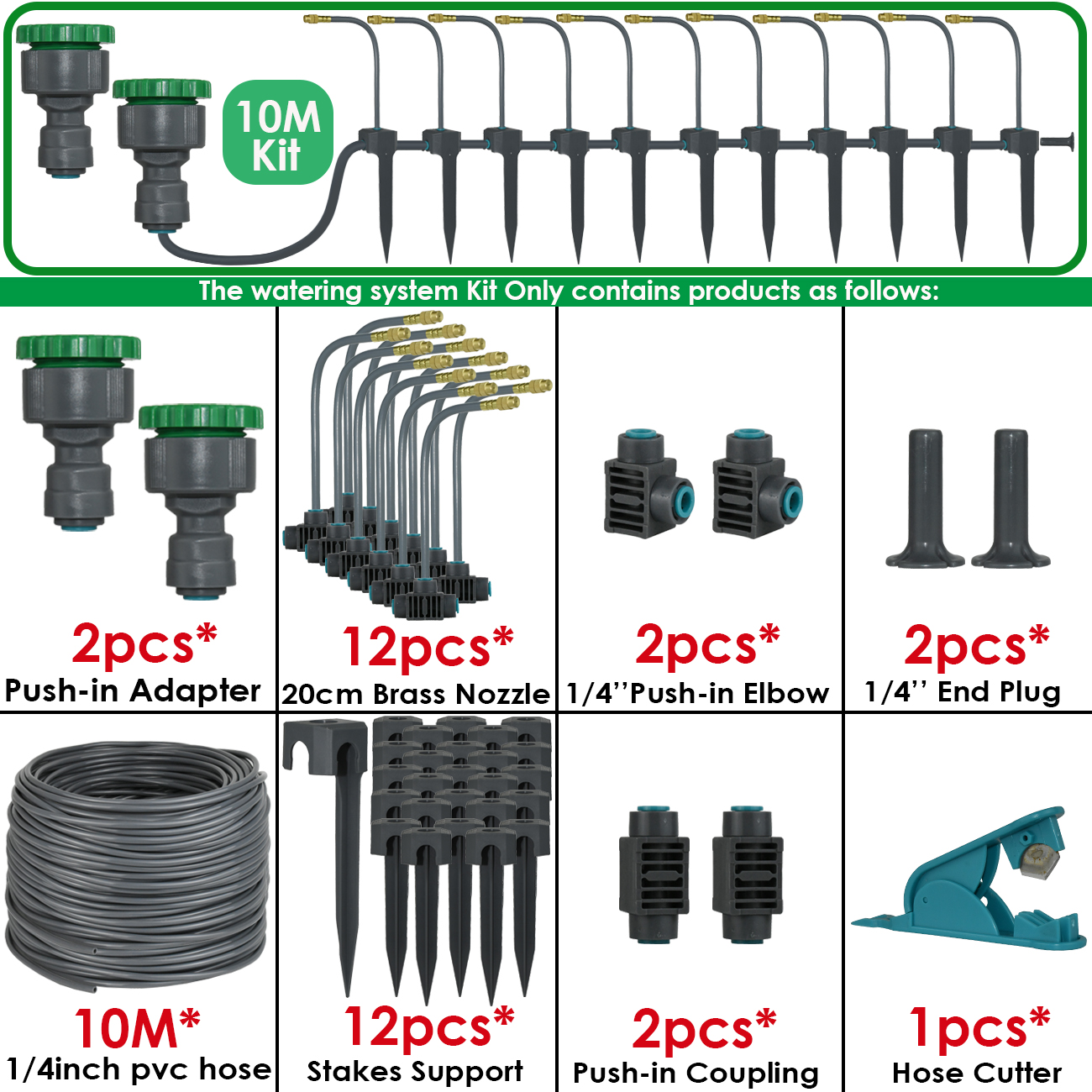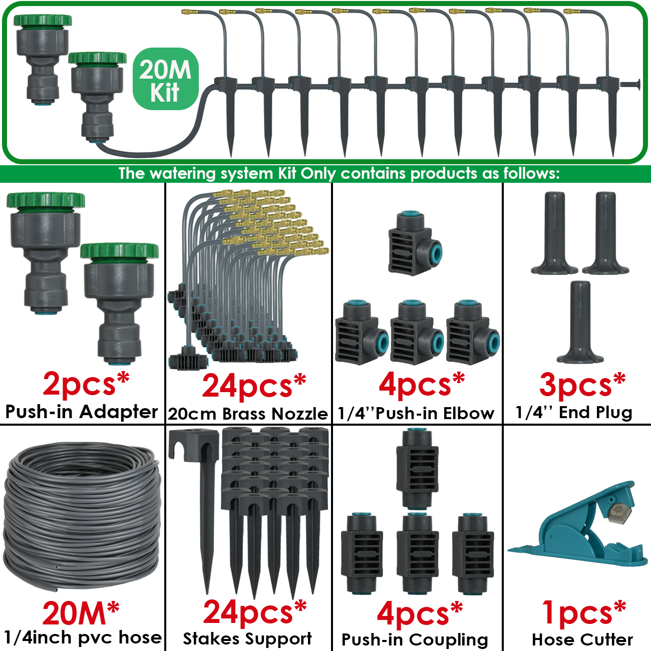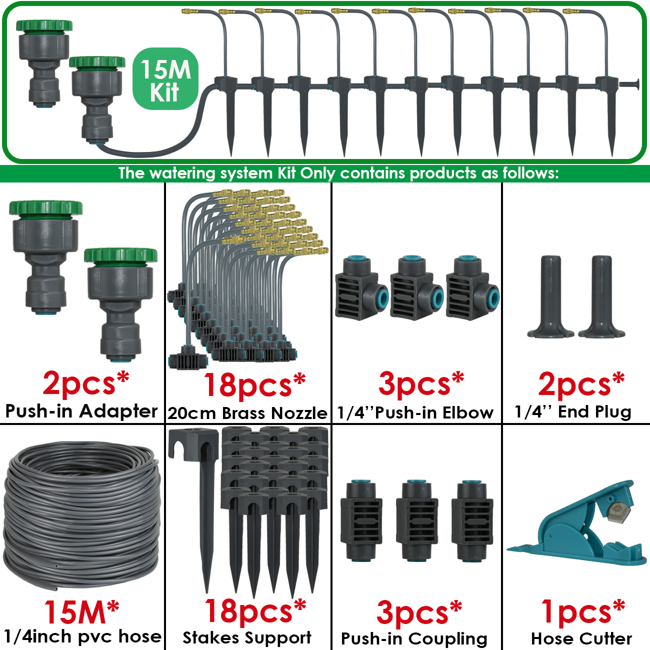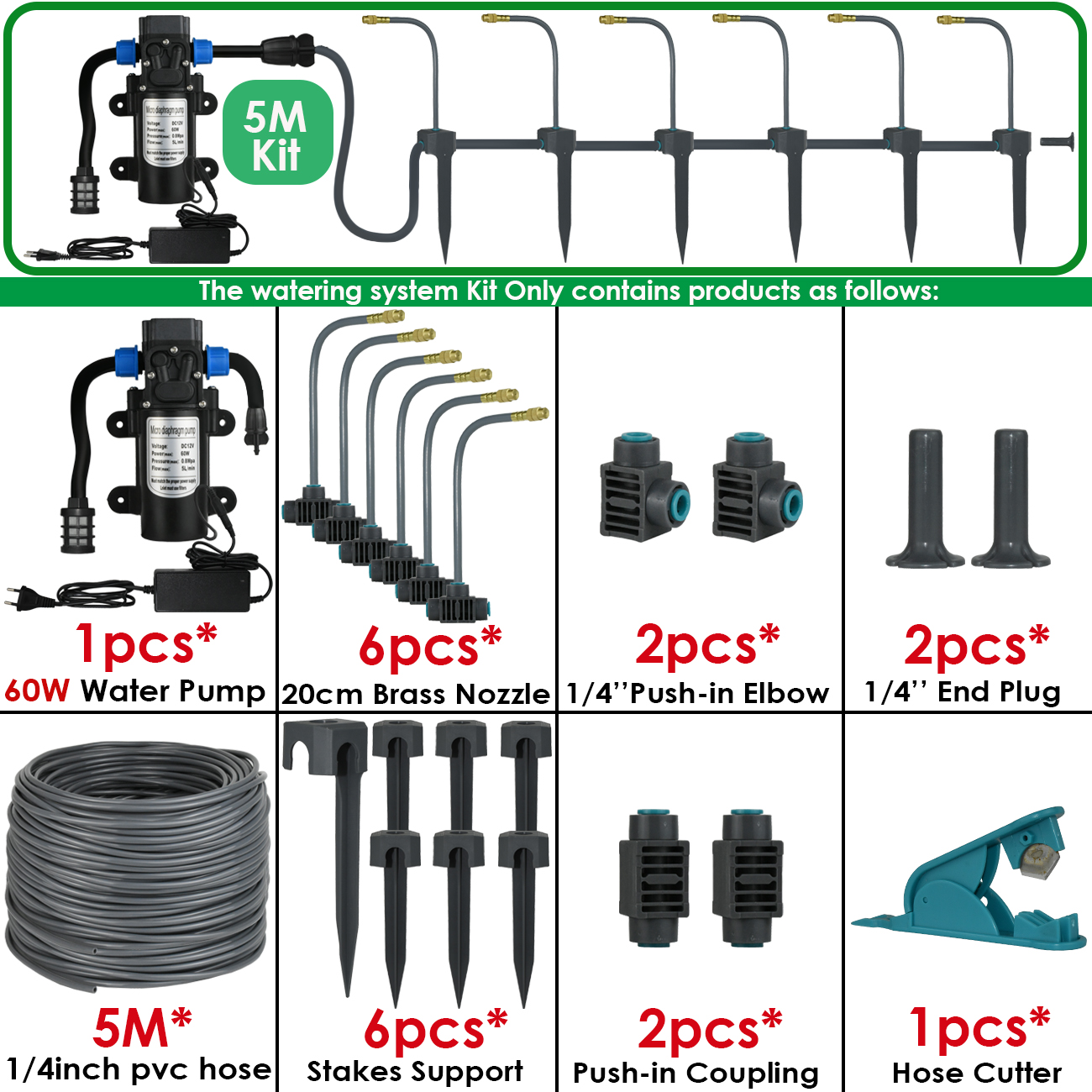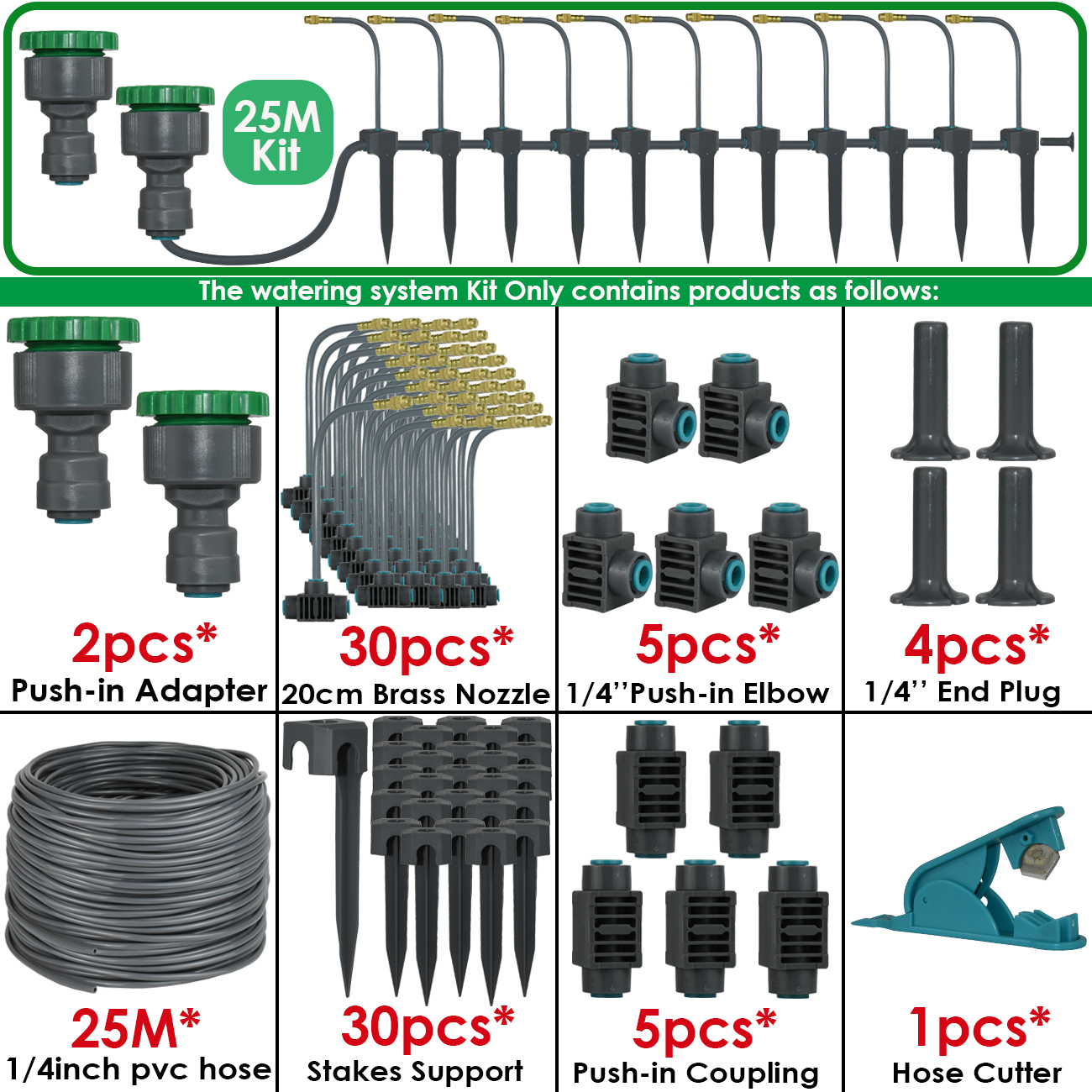 5M-30M 360° Bendable Mist Brass Cooling Sprinkler Self-priming Pump Watering System Quick Push-in Connector Drip Irrigation Kits