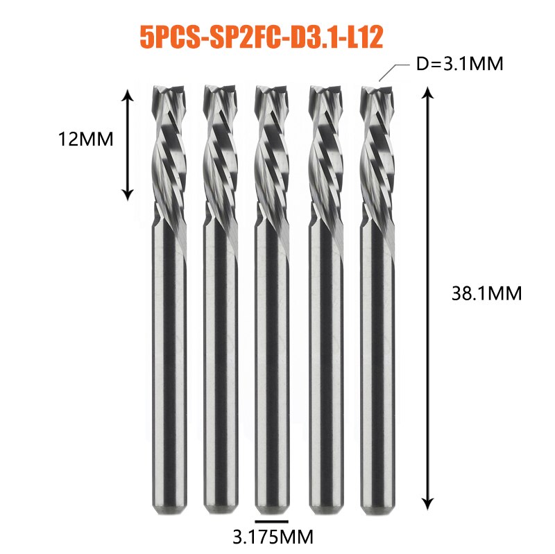 5PCS/LOT Compression Milling Cutter Woodwork DOWN Cut Two Flute Spiral Carbide Milling Tool CNC Router Bits Wood End Mill Cutter
