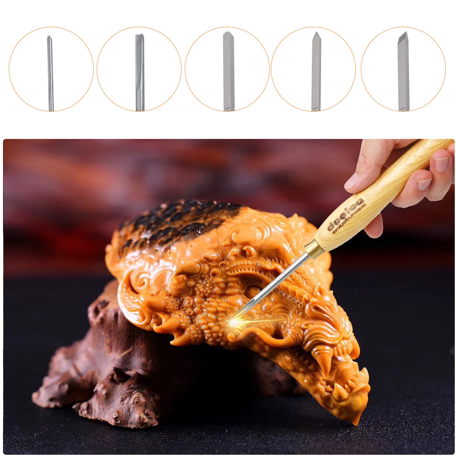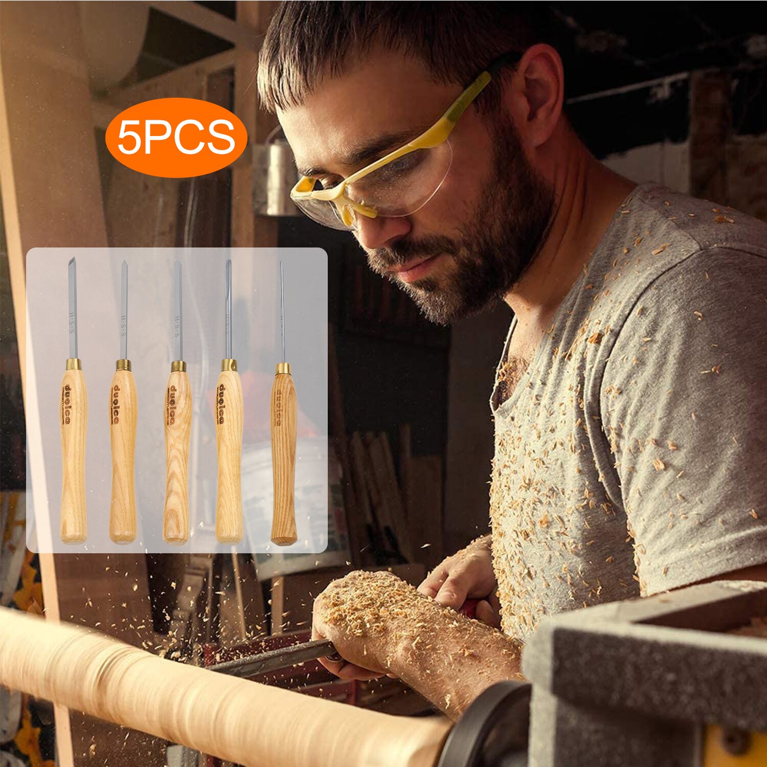 5PCS Woodworking Turning Tool Woodturning Tool Lathe Tools Woodworking Wooden Handle Wood Turning Chisel Set HSS Lathe Chisels