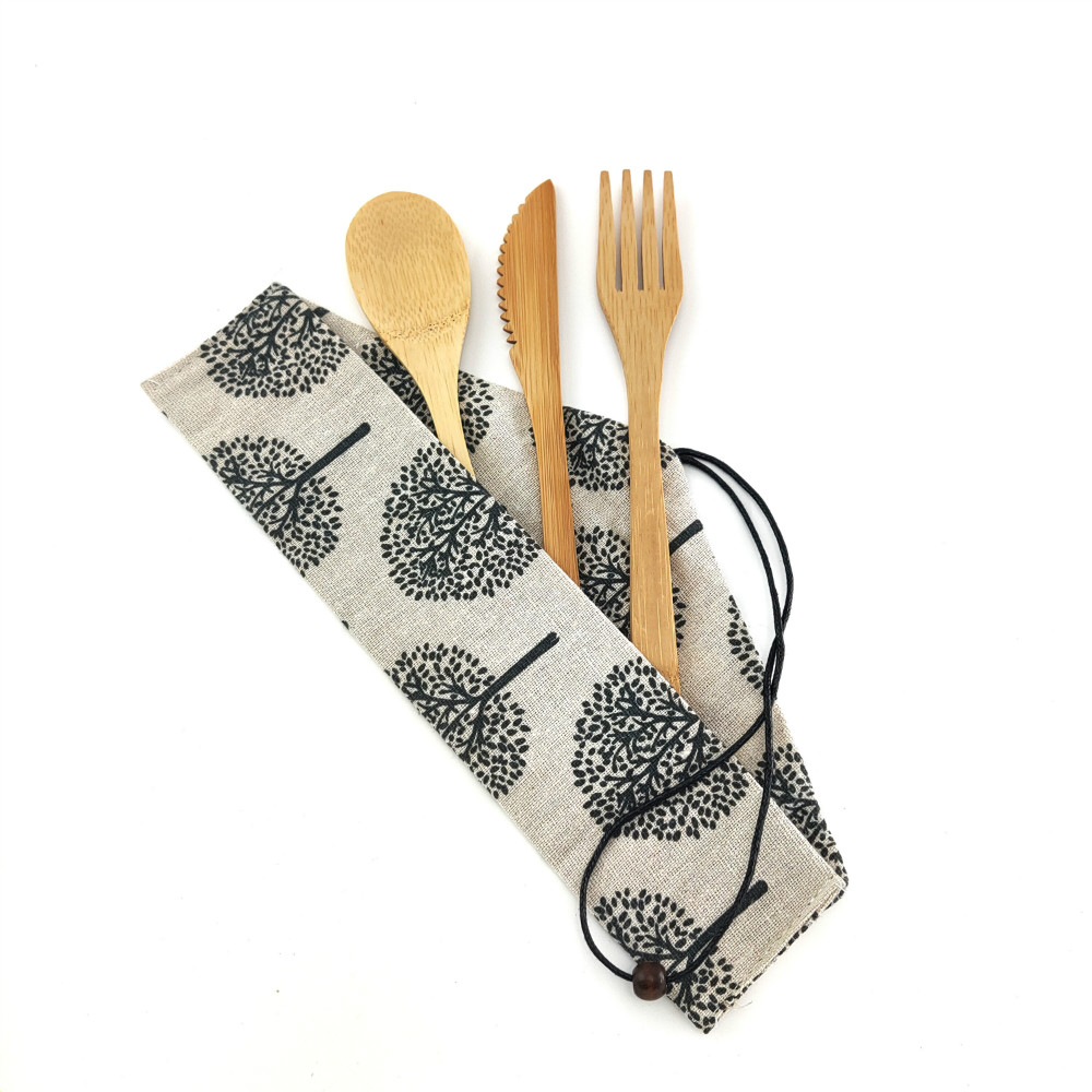 7Pcs Portable Eco Friendly Flatware Set Bamboo Travel Utensils Sustainable Biodegradable Cutlery Set For Kitchen