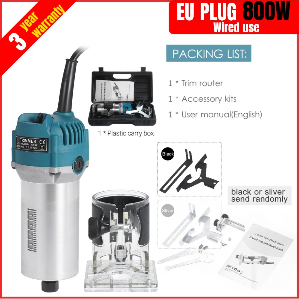 800w 30000rpm Wood Router Tool Combo Kit Electric Woodworking Machines Power Carpentry Manual Trimmer Tools With Milling Cutter
