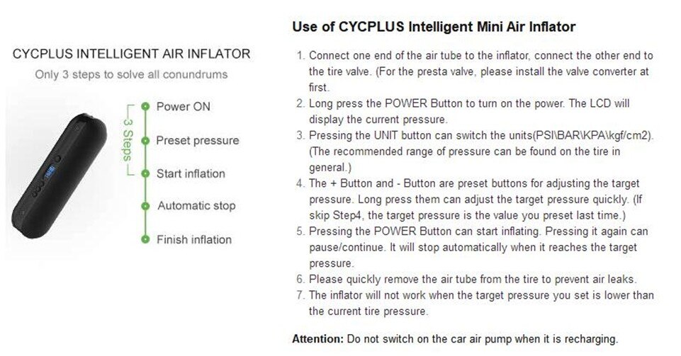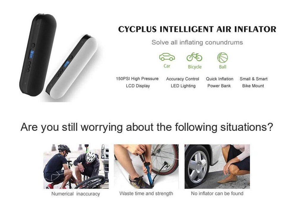 CYCPLUS Portable Air Compressor Mini Inflator for Car Bike Tires Rechargeable Li-Ion Battery Power Bank Digital LCD, LED