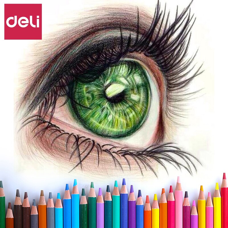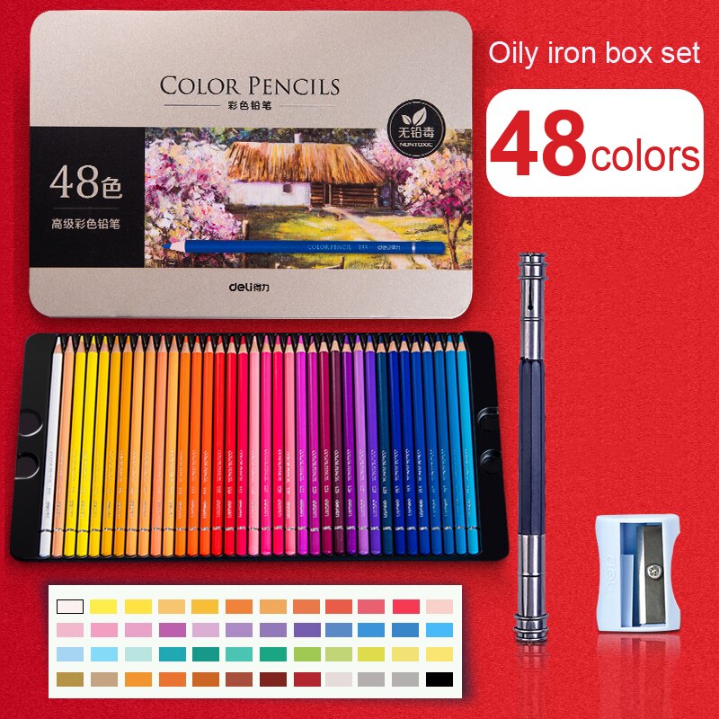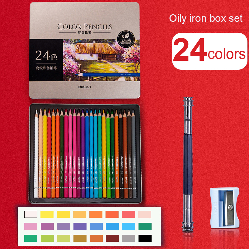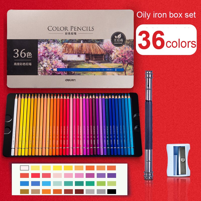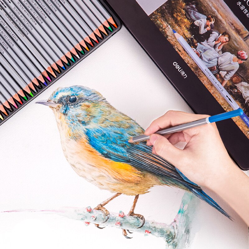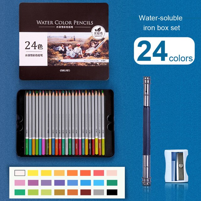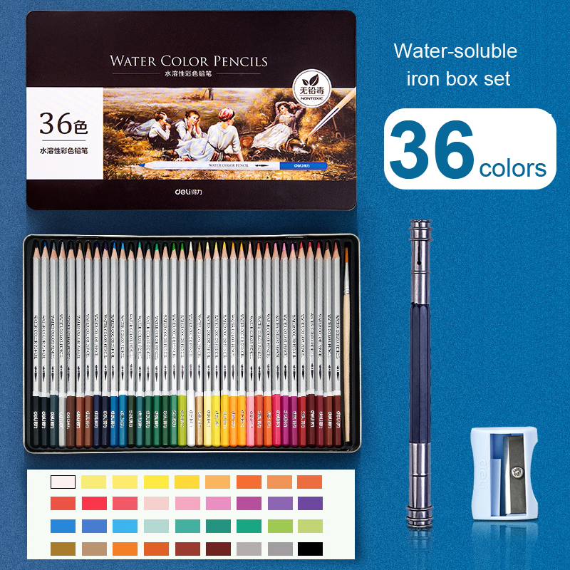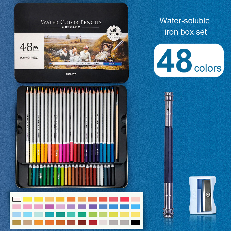 DELI water-soluble color pencil tin box set 24/36/48/72 color student sketch drawing pencil