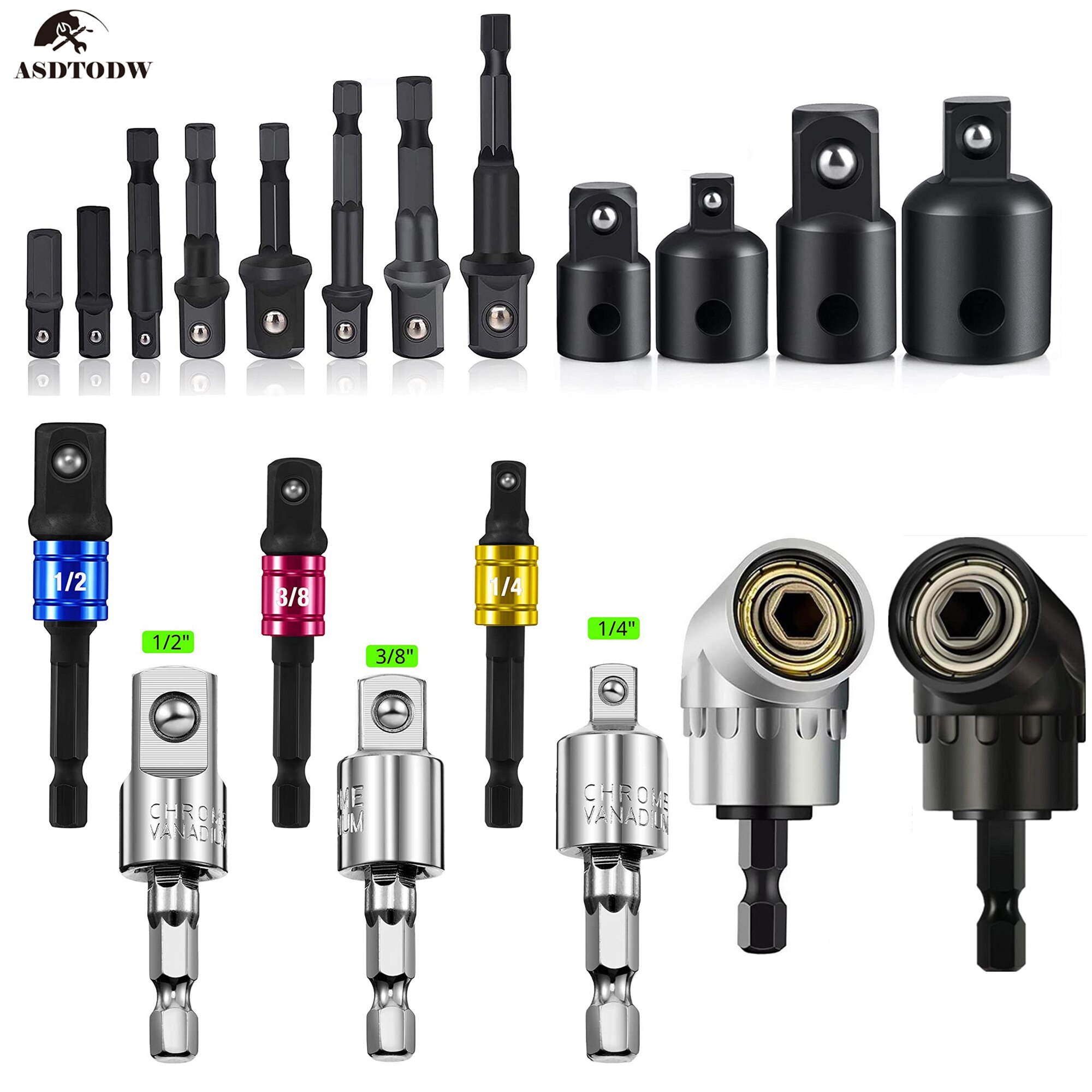 Drill Socket Adapter Converter For Impact Driver 105° Right Angle Drill Attachment Bit Impact Socket Adapter and Reducer Set