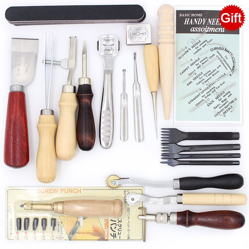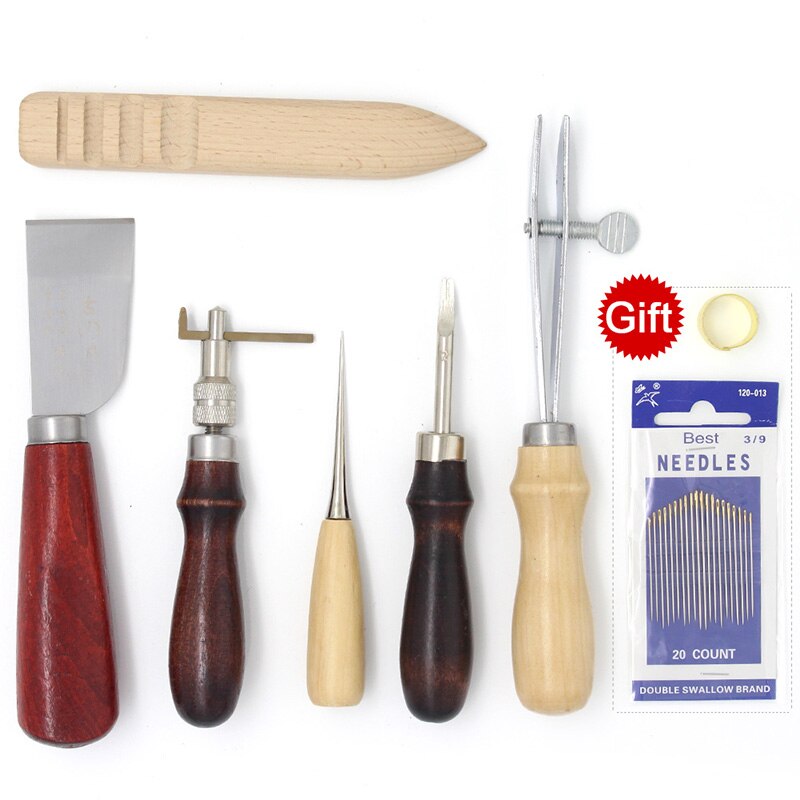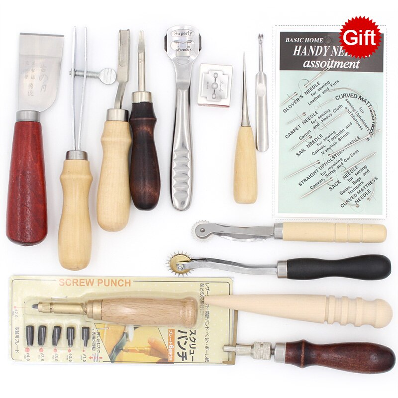 Leather Craft Tools Punching Hole Cutting Knife Suture Needle Basic Hand Stitching Sewing Tools, Manual Peeling Edge Process