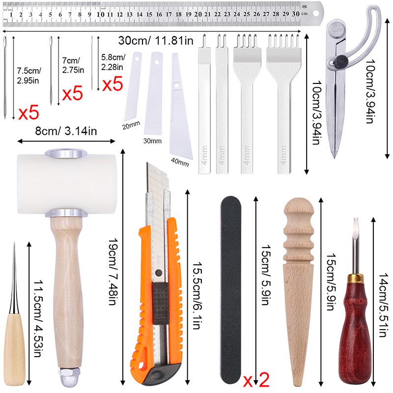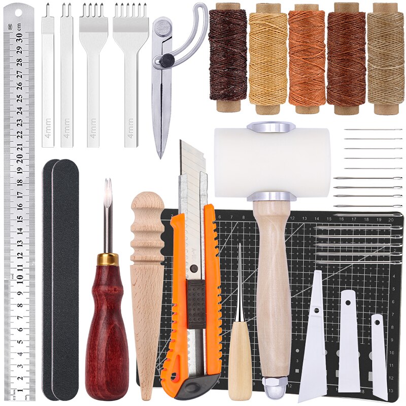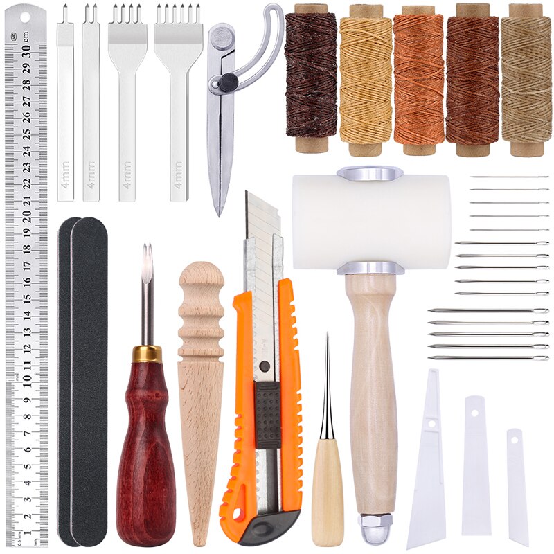 LMDZ 37 Pieces Beginners Leather Work Tools, Leather Working Kit With Lnstructions, Leather Groover, Awls, Prong Punch,Needles