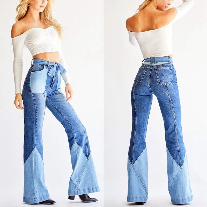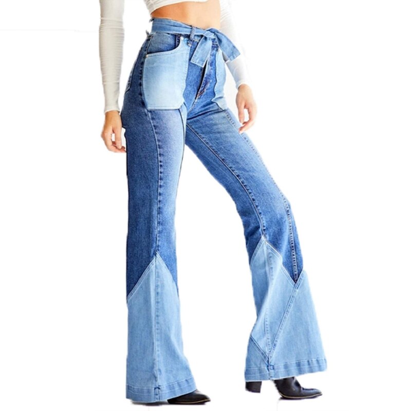 LOOZYKIT Women Jeans Push Up Flare Slim Denim Trousers Vintage Casual High Waist Jean Pant Patchwork Stretchy wide leg jeans