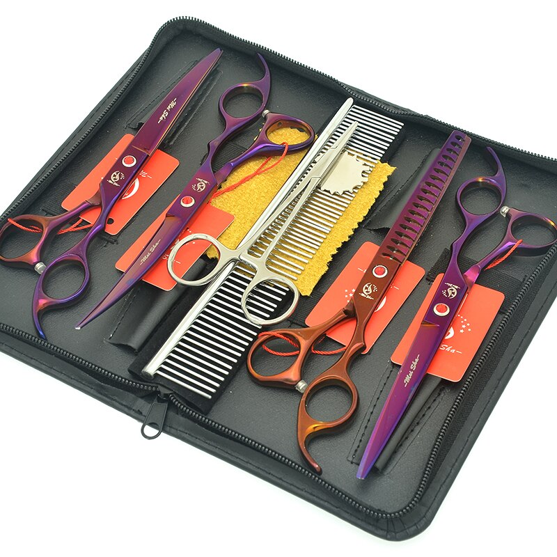 Meisha 7" Pet Grooming Shears Set Animal Straight& Thinning & Curved Scissors with Comb Bag Dog Accessories HB0233