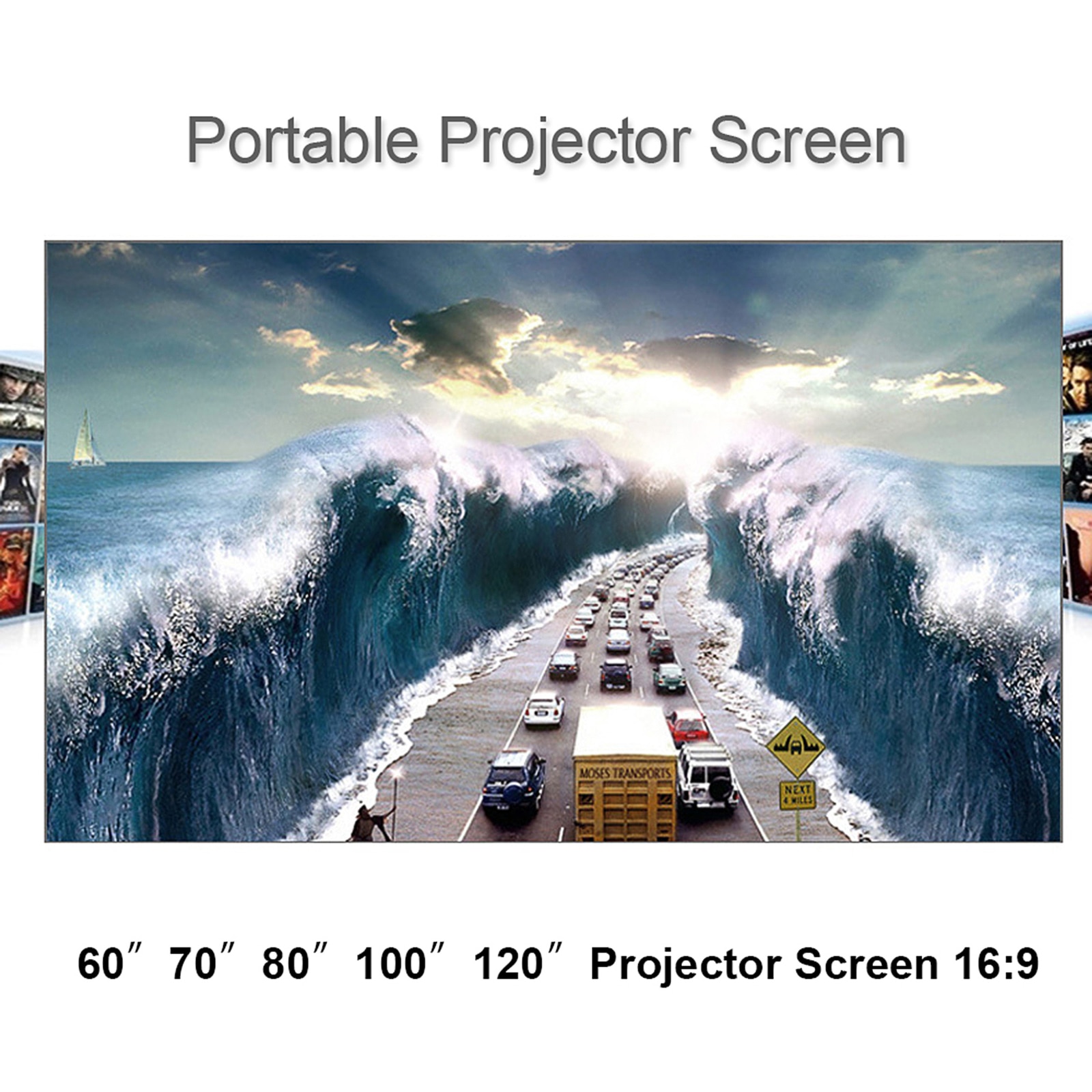 Portable Projector Screen 60/70/80/100120 inch HD 16:9 Frameless Video Projection Screen Foldable Wall Mounted for Home Theater