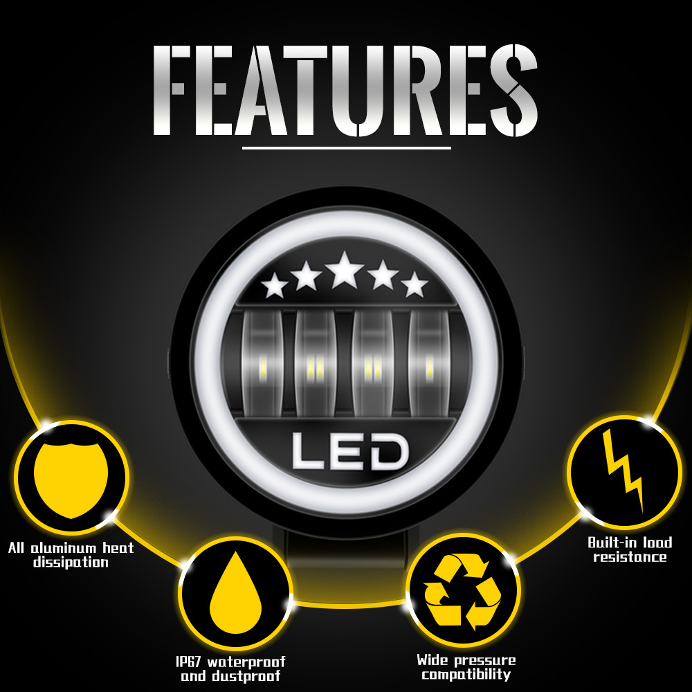 Round LED Work Light 35W Combo Beam LED Light Daytime Running Off Road Driving Lights for Truck SUV ATV 4WD Construction Camping