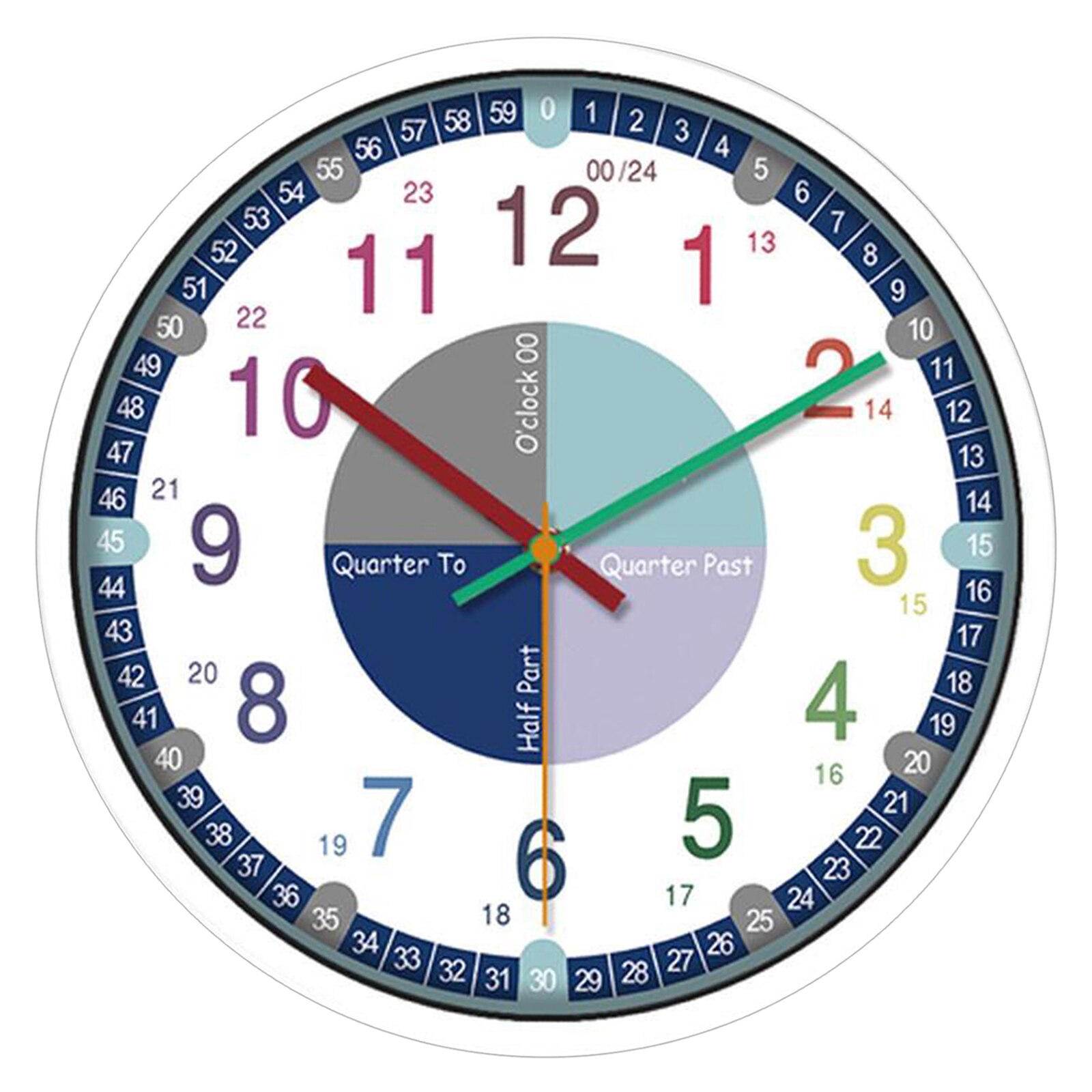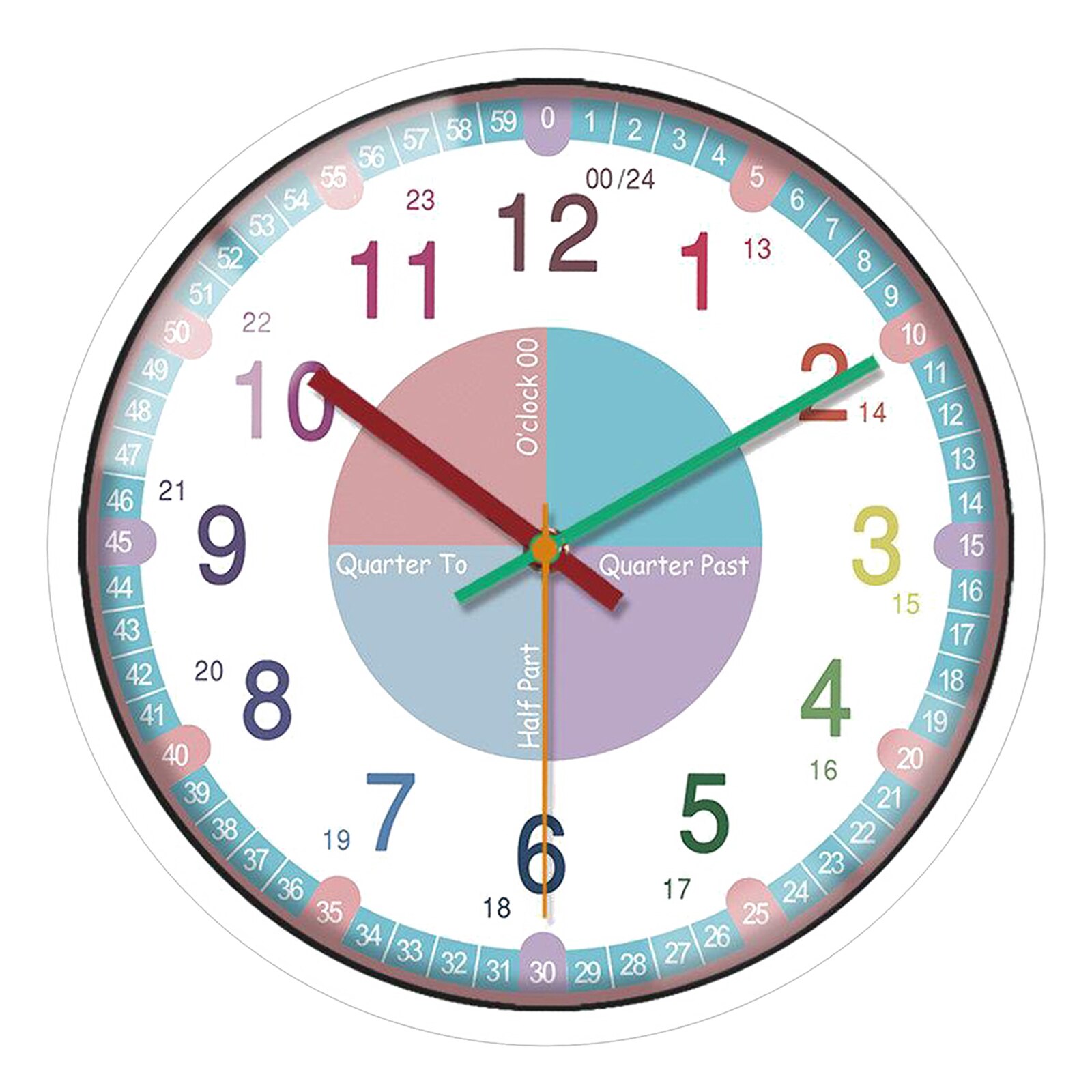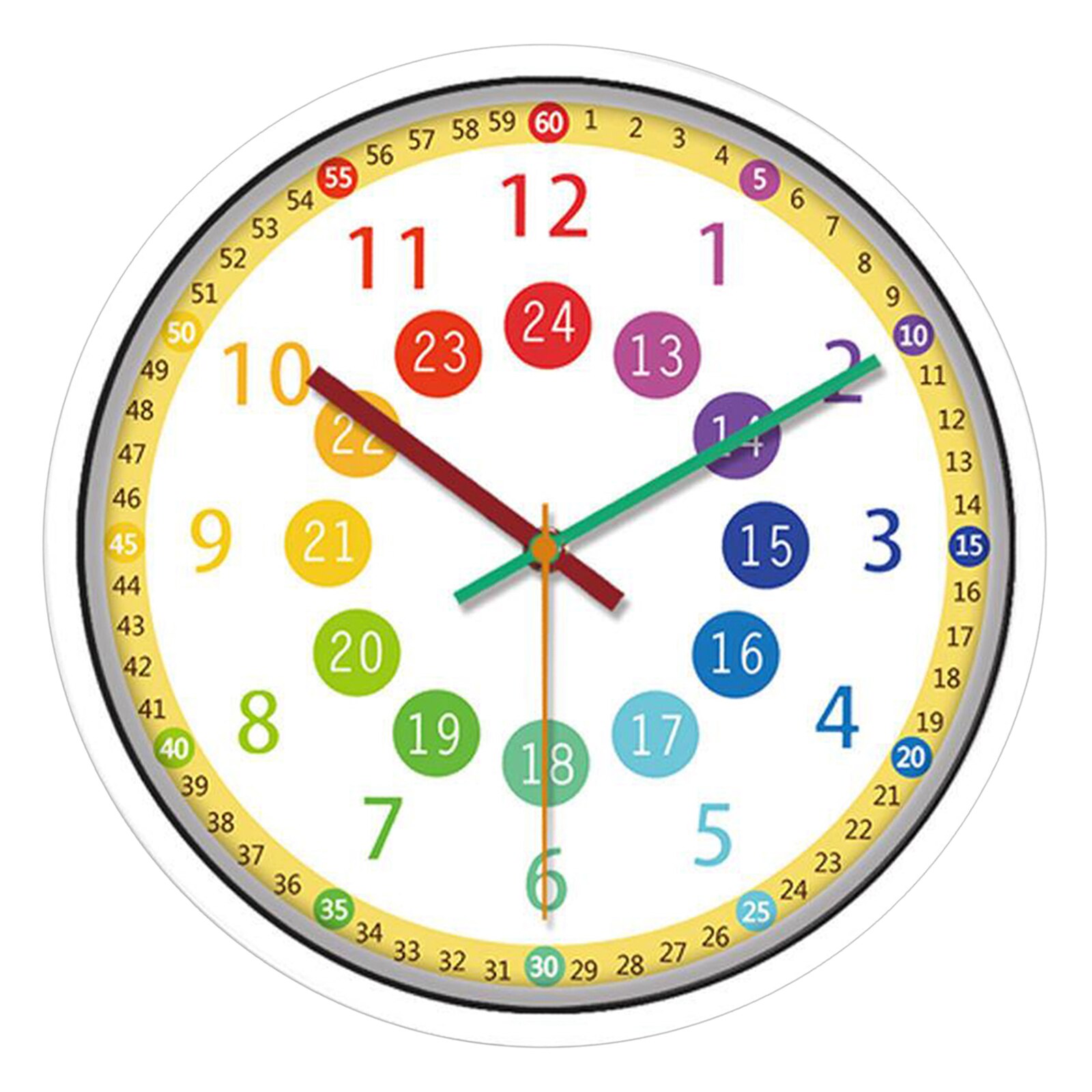 Time Teach Kids Wall Clock Learn to Tell Time Colorful Numbers Large Display