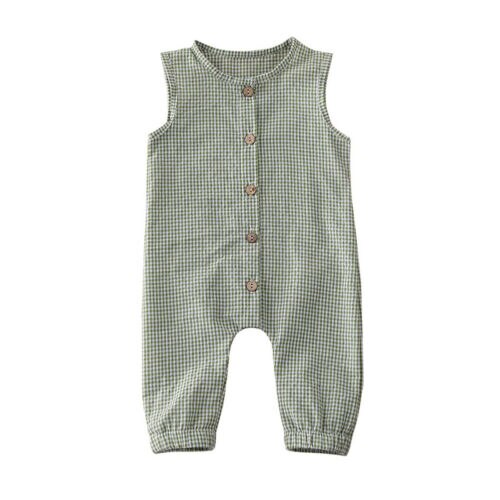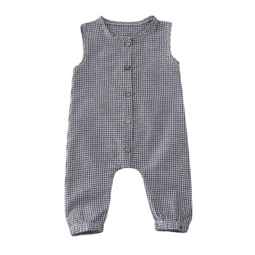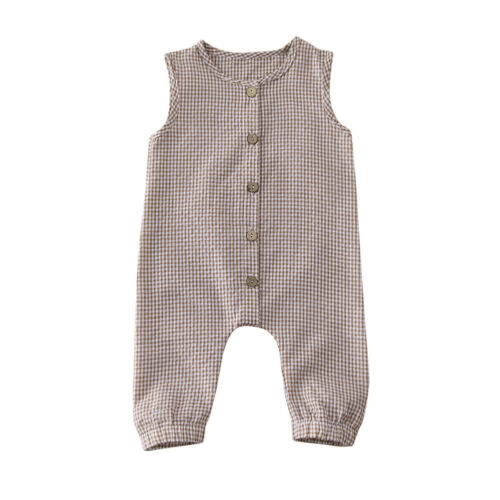 US Summer Kid Baby Girl Boy Clothes Plaids Romper Jumpsuit Overall Casual Outfit