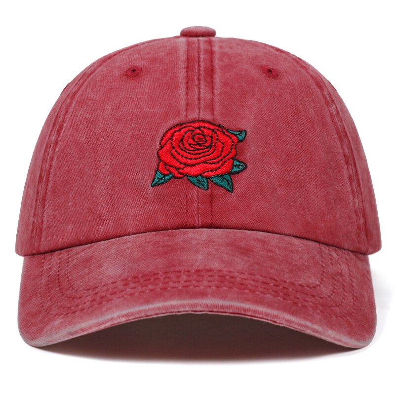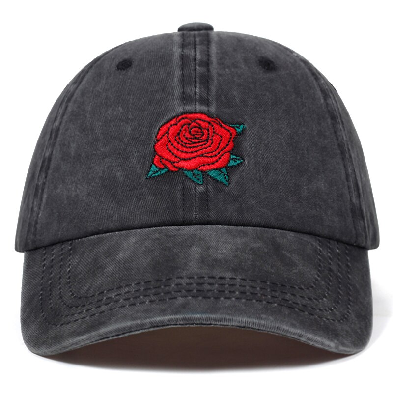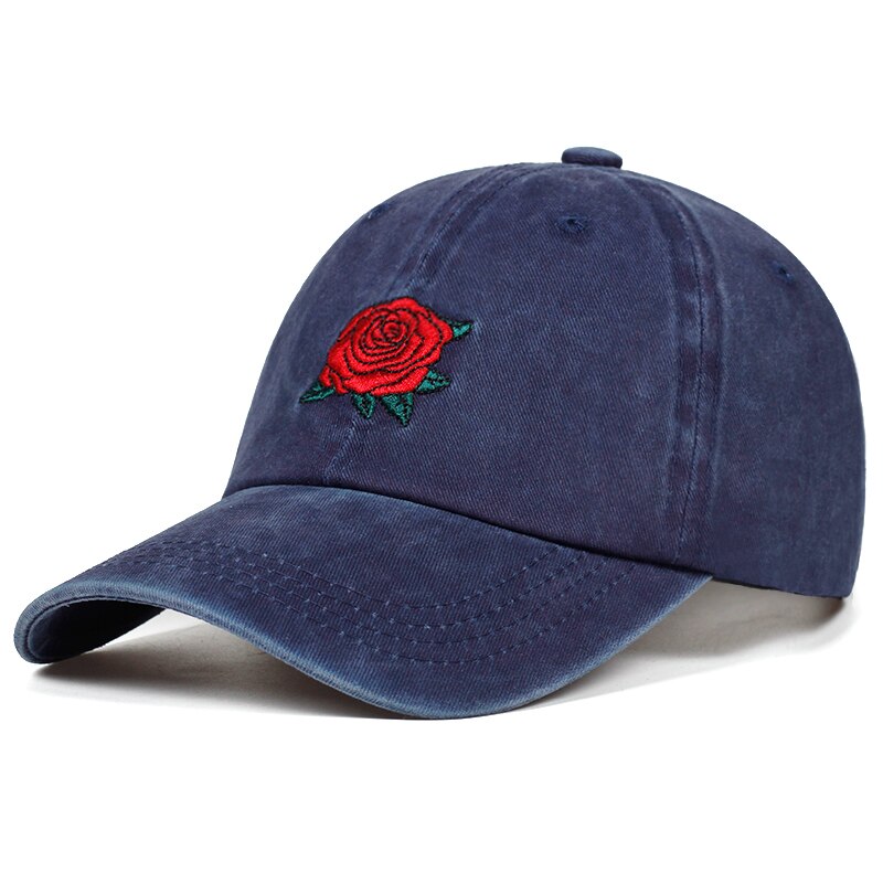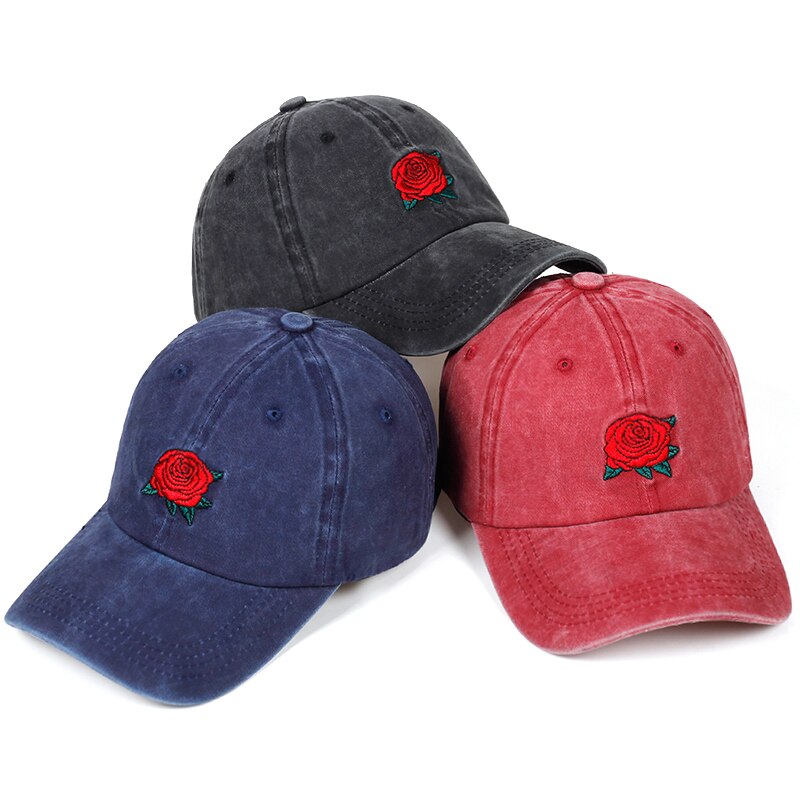 Washed rose embroidered baseball cap cotton hip hop hat men's and women's dad hats adjustable outdoor caps