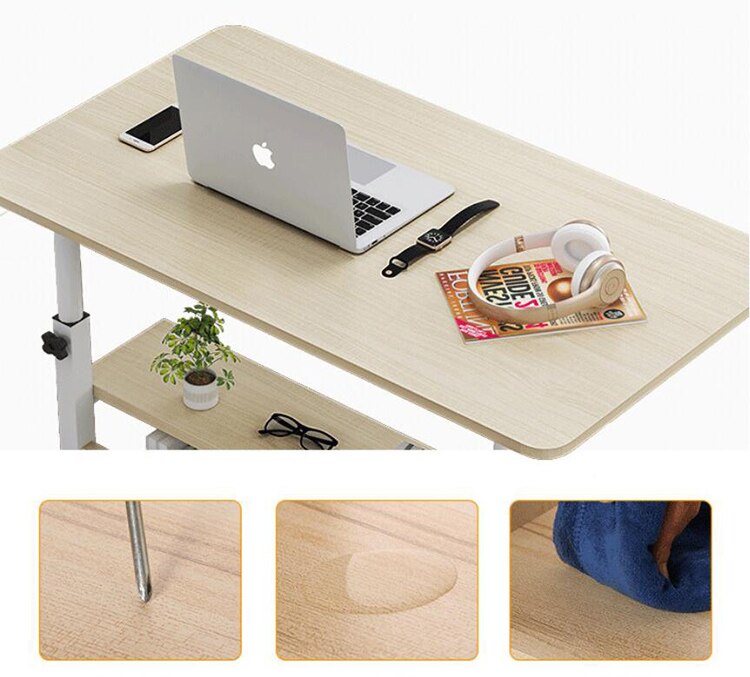 Wooden Laptop Table with Wheels Shelf Storage Height Adjustable Laptop Desk Computer Stand Desk for Sofa Bed Beside